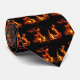 Esta corbata representa la energía del fuego en una estufa de leña. Un patrón abstracto de repetición de llamas naranjas, doradas y amarillas aparecen como personajes de baile alegres. Están despegados por un fondo negro.