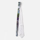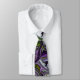 Diseño ondulado de violetas, verdes, azules y grises expuestos en un empate masculino. Obra de Christina Spiegeland.
