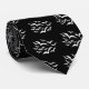 Esta corbata de novedad de Halloween está cubierta en una colección de imágenes simples de murciélagos volando juntos en un patrón de nube. Los murciélagos son blancos y el color de fondo de la corbata es negro.