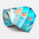 Una representación colorida y muy abstracta de una puesta de sol. Los colores van desde el azul del cielo, hasta el amarillo del Sol, hasta el naranja y el rojo de las nubes en el horizonte.