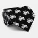 Corbata de Guay para un hombre amante de la granja en un patrón agradable para los ojos. El diseño tiene un patrón de tractor blanco, fondo negro y es un regalo perfecto para él.