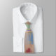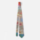 This neck tie features a vibrant geometric pattern inspired by traditional handcrafted needlework. The design showcases an eclectic mix of triangles and squares in a sophisticated palette of deep navy, burnt orange, and warm neutrals. Intricate overlapping shapes and contrasting colors create a dynamic visual texture reminiscent of a vintage heirloom. This accessory provides a stylish way to add a classic aesthetic with a modern, artistic flair to any formal or professional attire.