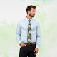 This men's necktie features a beautiful dusty teal Asian print of tropical flowers and golden green leaves in Chinoiserie style. This lovely vintage tie would be great for a special event or formal tropical party.