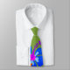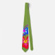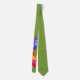 Corbata con gran hibisco con dos flores. Una flor azul y otra rosa sobre un fondo verde tropical.