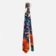 Representación artística y vibrante de varias flores en plena floración, con una impresionante colección de colores que incluyen pétalos naranjas, amarillos, azules y rosas, todo ello con un fondo profundo y texturado, complementado con hojas verdes y pequeñas flores para una escena de jardín animada y armoniosa