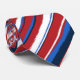 ¡NUEVO! Los movimientos pintados a mano al azar del cepillo componen esta corbata rayada painterly original. Un diseño de la materia textil de cuatro colores. Una tierra roja con los azules blancos, reales y de marina de guerra.