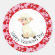 Este adorable cordero quiere desearle un feliz Día de San Valentín. En un fondo rosado con corazones rojos, este diseño tiene un cordero bebé. Se puede personalizar el texto. Estos pegatinas se coordinan con la "Tarjeta de San Valentín de Corazón y Corazón para Niños", para niños. Se puede usar en el sobre o como sello para bolsas de regalo.