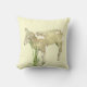 Esta almohada dulce al aire libre cuenta con un lindo cordero de apenas tres semanas de edad. Está masticando hierba con un fondo amarillo.