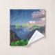 ¡Una foto escénica hermosa de las montañas en Kauai Hawaii! Las montañas muestran capas de roca coloreada rojo, de árboles escasos, y de plantas tropicales verdes de la selva. Atmósfera nebulosa ligera con las nubes y el cielo azul. ¡Parece un lugar agradable para tomar un alza larga!