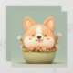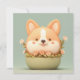 This precious design showcases an adorable Corgi puppy head with a perfectly round, chubby face peeking out from a simple ceramic bowl. The artwork is created in a smooth 3D clay style, giving the puppy a soft, toy-like appearance with its signature orange and white markings, tiny pink tongue, and rosy cheeks. Surrounding the puppy are delicate, hand-sculpted clay flowers in a soft peach hue and gentle green leaves, all set against a calming sage green background. The minimalist and "kawaii" aesthetic creates a heartwarming and cheerful scene that is perfect for any dog lover who appreciates modern, clean character art. This charming Corgi postcard is an ideal way to send a cheerful spring greeting or a "thinking of you" note to a friend who loves gardening. You might choose to use this cute animal card for a baby shower invitation or to celebrate a new pet adoption with family members. It also makes a sweet decorative piece for a nursery or a bright addition to a teacher's desk as a small token of appreciation. This versatile design is also an excellent choice for floral-themed birthday party announcements, pet-friendly event invites, or as a heartwarming way to share a short message of kindness with a neighbor.