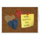 Una tarjeta de San Valentín perfecta de un niño o de un hombre. Cartel con cortes cardíacos. Un post nota con texto escrito a mano Feliz Día de San Valentín.