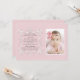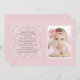 Esta impresionante invitación rosa y blanca comparte tu felicidad en un día especial. El diseño cuadrado cuenta con un precioso desplazamiento con corazones de esquina y una ventana de fotos para su preciosa pequeña. La cruz puede arrastrarse a cualquier lugar, hacerse más grande o más pequeña (+ -) o eliminarse, lo que hace de esta una invitación versátil para el día especial de una niña.La tarjeta es fácil de personalizar con su redacción, fuente, color de fuente y elección de seis tipos de papel.