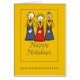 Tarjetas de vacaciones de personalizable que incluyen 3 damas de coro, un fondo amarillo y el dicho Felices Fiestas. Grandes cartas para enviar a la familia y amigos durante la temporada de vacaciones.