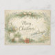 Esta ilustración de estilo vintage suave para las fiestas presenta una delicada guirnalda botánica que enmarca una elegante letra script en tonos apagados de salvia. Ramitas de hoja perenne, bayas rojas, flores similares a la lavanda y ramas de olivo están dispuestas con un toque natural y aireado, acentuadas por un lazo de color lino en la parte superior. En la base, urnas de jardín de piedra llenas de vegetación se sientan junto a piñas y una sola poinsettia, añadiendo encanto rústico. Un tenue pueblo nevado con una pequeña iglesia aparece en el fondo, realzando la atmósfera pacífica del campo. El fondo cálido de pergamino y la paleta de verdes y cremas suaves crean una estética navideña inspirada en la casa de campo que se siente atemporal y serena.