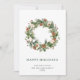 Corona de abetos con piñas Feliz Navidad Tarjeta de saludo de vacaciones.