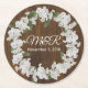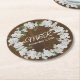Servilletas de papel de cartón pulp para boda rústica chic con acabado de madera marrón, con gráficos de una corona floral de aliento de bebé blanco. Personalice el texto blanco según sus necesidades. Genial para cualquier evento de boda y hace pequeños favores para sus invitados.