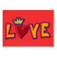 Palabra de amor roja con una corona en la carta de corazón "o"