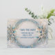 Una corona de anuncio de fecha inspirada en Art Deco con tonos impresionantes de turquesa. Personalice el texto con sus detalles: una forma encantadora de invitar a familiares y amigos a guardar la fecha.