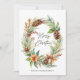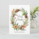 Tarjeta de felicitación con corona de Navidad con piñas, bayas y follaje.