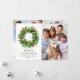 Tarjeta de Navidad de Corona de Navidad de conos de pino y bayas de acebo.