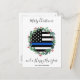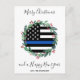 Envía felicitaciones de Merry Christmas a amigos y familiares con esta tarjeta de Navidad única de la delgada línea azul de la policía - Corona de Navidad en un diseño de bandera estadounidense en colores de la bandera de la policía, diseño moderno en negro, azul y blanco con acebo y bayas. Personaliza con el nombre de la familia. Esta tarjeta de Navidad de la policía es perfecta para familias de policías o tarjetas de Navidad del departamento de policía. DERECHOS DE AUTOR © 2020 Judy Burrows, Black Dog Art - Todos los derechos reservados. Postal de Navidad de la corona de la delgada línea azul de la policía.
