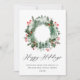 Tarjeta de Navidad de corona de paisaje de acebo y pino del bosque