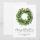 Tarjeta de Navidad de Corona de Navidad de Piñas y Bayas de Acebo