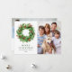 Tarjeta de Navidad de Corona de Navidad de Piñas y Bayas de Acebo.