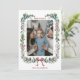 Celebre la temporada con esta festiva tarjeta de foto de Navidad con corona de acuarela y lazo rojo. Con una corona pintada hermosamente adornada con exuberante follaje, bayas y un llamativo lazo rojo, este diseño es perfecto para enmarcar su foto favorita de Navidad. Ya sea para reuniones familiares o para enviar cálidos deseos a seres queridos, esta tarjeta personalizada agrega un toque de elegancia y espíritu navideño. Personalice el texto para un saludo verdaderamente único y memorable. Ideal para Navidad, fiestas navideñas o para difundir alegría estacional.