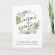 Una hermosa corona de Navidad adornada con flores blancas con las palabras Saludos de temporada. Agregue su propio mensaje personal a esta impresionante tarjeta de vacaciones de Ricaso