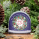 Esta elegante esfera de nieve de Feliz Navidad cuenta con una lujosa corona de Navidad sobre un fondo azul noche que evoca la noche de Navidad.