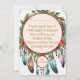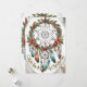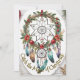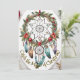 ¡Incorpore a sus saludos navideños el encanto embelesador de un atrapasueños! Esta tarjeta de Navidad única presenta una corona en forma de atrapasueños, adornada con vibrantes acebos rojos, flores de Navidad radiantes rojas, ornamentos brillantes y exuberantes hojas invernales verdes entrelazadas con gracia alrededor de una vid marrón rústica. En su corazón hay una flor en forma de estrella colocada dentro de una delicada red circular de atrapasueños, que emana un encanto mágico. El diseño se completa con cuentas y plumas colgantes en tonos azul verdoso, marrón y lavanda suave para un toque bohemio caprichoso.