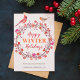 Tarjeta de Navidad de vacaciones de invierno inspirada en la tradición rústica para familia o empresa, que presenta un bonito wreath de bayas de acebo rojas burgundy, púrpura, rosa y naranja en acuarela con follaje y dos pájaros - un cardenal y un petirrojo - y una tipografía moderna contemporánea "Felices Fiestas de Invierno". ++++++++++++ ¡Personalízala con tus deseos y tu nombre! ++++++++++ Puedes agregar texto personalizado manuscrito y firma en el reverso.