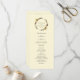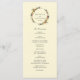 Nuestro elegante programa de boda presenta los detalles de su ceremonia en elegante letra gris, enmarcado en la parte superior con una corona de acuarela en colores gris, dorado, amarillo, naranja y negro sobre fondo marfil.