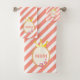 Juego de toallas de moda con diseño de corona de reina hermosa y flores rosadas con rayas diagonales de coral y blanco en el fondo. El texto MAMÁ se puede personalizar.