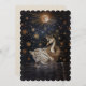 Ya sea que envíe una tarjeta para su cumpleaños, un boda o hospede a un fiesta de jardín, esta encantadora invitación / tarjeta - inspirada en pinturas al óleo antiguas - añadirá un toque de elegancia. Este diseño representa un elegante 🦢 de cisne adornado con un lujoso collar de rúbricas adornadas con perlas, adornado con gracia con una corona de reyes. El cisne se sitúa sobre un telón de fondo nocturno estrellado, lo que añade un sentimiento de asombro y de encanto. Flota suavemente sobre aguas brillantes, contribuyendo a un ambiente sereno y tranquilo. La obra combina con maestría elementos de una estética vintage con técnicas contemporáneas de pintura al óleo, creando un rico tapiz de pinceles que agregan profundidad y dimensión a la escena. El detalle meticuloso destaca las texturas intrincadas y las delicadas características, realzando la experiencia visual e invitando a los espectadores a sumergirse en la belleza tranquila del momento.