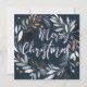 Diseño acogedor y personalizado con la frase "familia Johnson" que puede cambiar. ¡Cambia la foto de atrás y hazla tuya! Minimalista diseño de tarjetas de vacaciones con una temática inspirada en la pintura. La tarjeta presenta una simple paleta de color azul marino y blanco, con un elegante tipo de letra con el mensaje "Feliz Navidad" en color rojo. El diseño evoca un ambiente natural y festivo, con detalles elegantes pintados a mano, que reflejan una estética moderna pero atemporal. ¡Cambia la foto de atrás y el texto y hazlo tuyo!