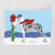 Navidad con los daneses de Danés-R-nosotros: Este great dane da un paseo en la nieve para llevar sus saludos del día de fiesta el buzón que lleva su bufanda hecha punto rojo.