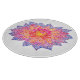 Siempre una flor llamativa, esta Dahlia presenta misteriosos tonos de azul, púrpura, rojo y naranja que casi parece ser 3D. Originalmente pintado a mano en acuarela utilizando un patrón único de mosaico floral. Relájese en su cocina con este práctico y práctico tablero de bonito.