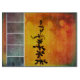 Una flor Pervoskia (Sabio Ruso) contra un fondo caliente amarillo y naranja con fotos de Collage en Aqua y rosa rosa con una pintura en metalizado aspecto texturizado.