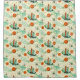 Abstracción del espacio exterior con cohetes atómicos, satélites, galaxias, planetas, estaciones espaciales y estrellas, en naranja, aqua, negro y lima, sobre marfil texturizado.