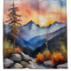 Cortina De Ducha Acuarela del amanecer sobre montañas cubiertas de