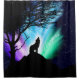 El Aurora Boreal. Un lobo aullando en el silencio de la noche. La escena es a la vez dramática y hermosa, lo que la convierte en una obra de arte mágica.