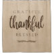 Presenta un texto marrón oscuro, agradecido, bendecido sobre un fondo de textura marrón claro con un elemento decorativo. Perfecto para el otoño y la temporada de cosecha o en cualquier momento.