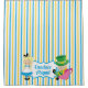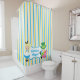 Cortina de ducha de Alicia en el País de las Maravillas con un divertido tema de libro infantil. La pequeña Alicia con su vestido azul y el sombrerero Loco se sientan en la decoración del cuarto de baño de rayas azules amarillas. Personalizar este accesorio de baño caprichoso con el nombre de su hijo.