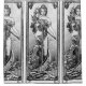 Esta es una imagen de media tonalidad de escala gris de la pieza Art Nouveau Flores rotas por Alphonse Mucha