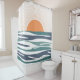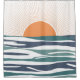 Resumen ilustracion de la salida del sol con sol naranja y decoración de olas de mar azul, blanco y turquesa