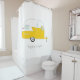 Esta cortina de ducha ofrece un ilustracion original por la tinta encantadora de un campista retro amarillo, también conocida como caravana. La fuente de la escritura proclama - el campista contento. Cambie el mensaje o personalícelo con nombres.