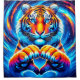 Esta cortina de ducha tiene un tigre con las manos en el corazón.