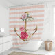 Cortina De Ducha Anclas florales rosadas rayas náuticas